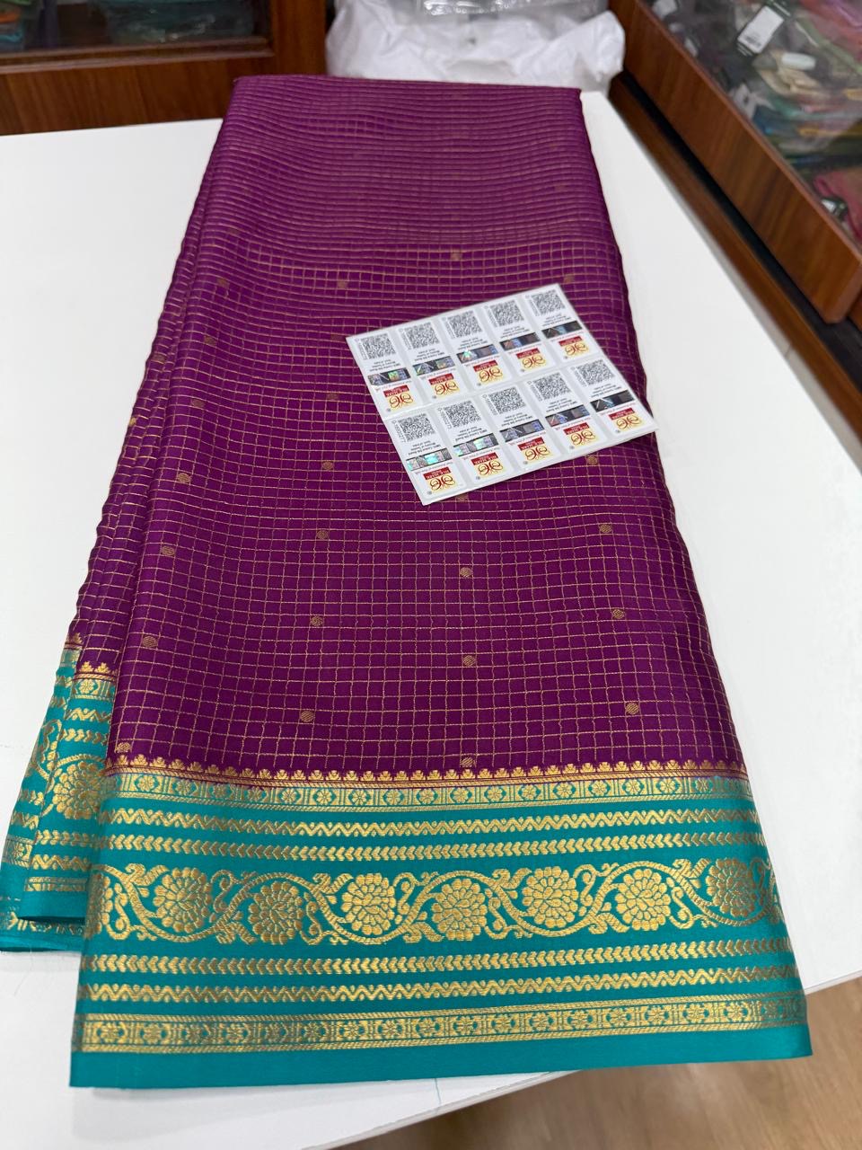 🧚🏻♀️ Traditional checks with motif pattern Mysore silk sarees with beautiful colours 🧚♀️